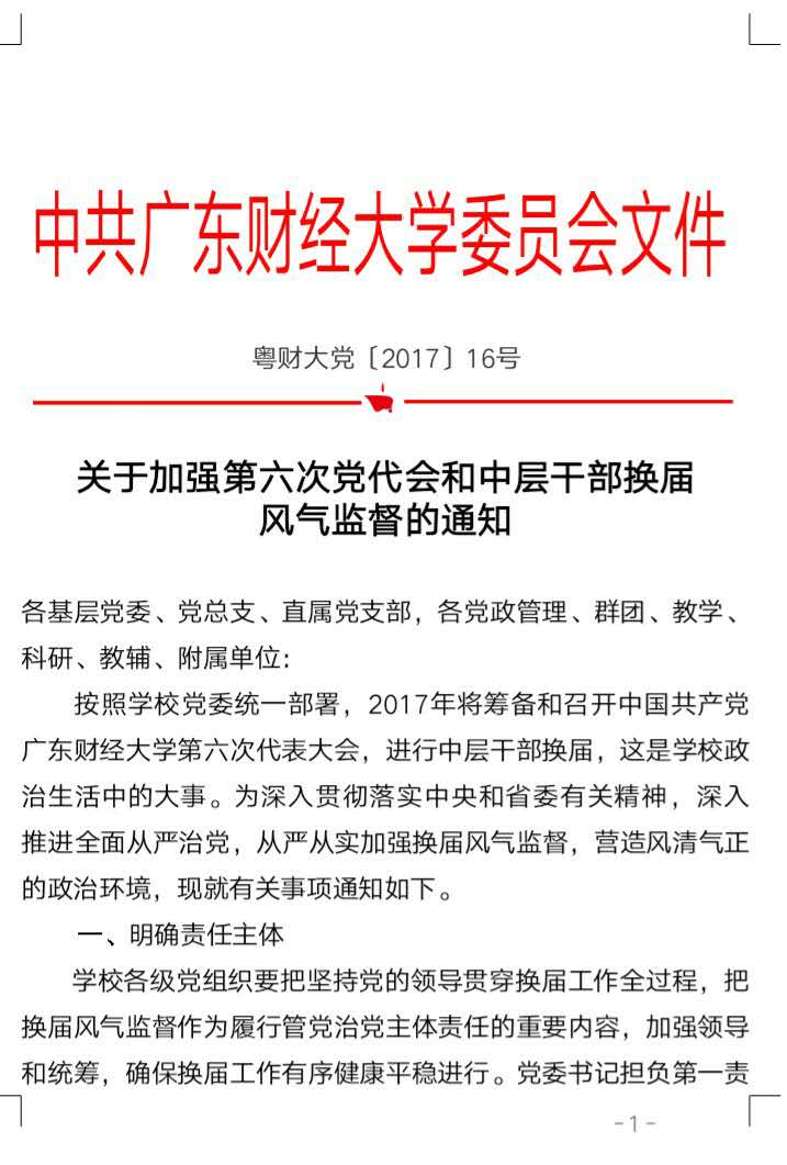 m88在线网站入口加强第六次党代会和中层干部换届风气监督的通知