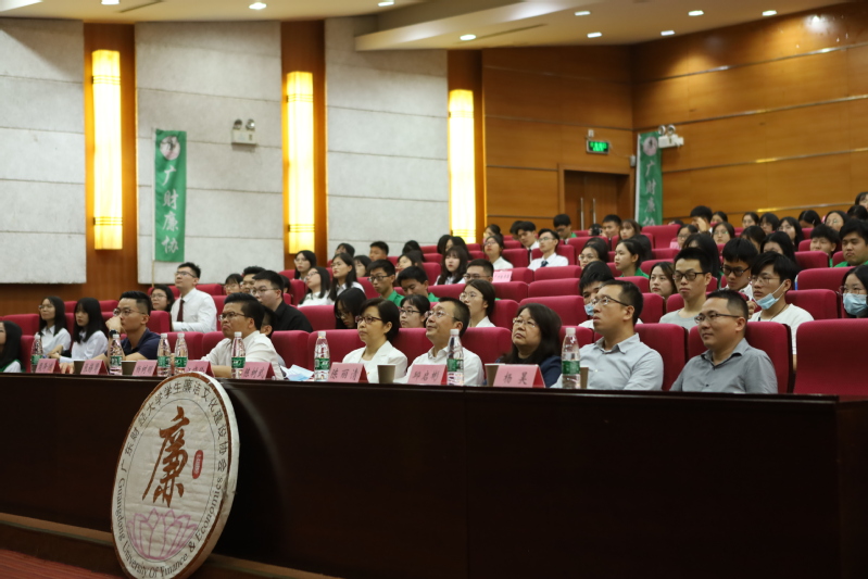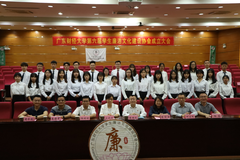 11月21日下午,广东财经大学第六届学生廉洁文化建设协会(以下简称“廉协”)成立大会在综合楼408会议室召开。校党委副书记、纪委书记、监察专员陈树武,校纪委副书记、监察处处长江晓铃,监察处副处长陈丽清,广州市纪委监委驻广州金控集团纪检监察组纪检监察室副主任、廉协第一第二届指导老师杨树明,校纪委办主任邱启彬,校纪委办、廉协指导老师杨昊,校纪委办老师张锡周、周泽鸿等出席,以及来自各学院基层党支部的学生代表、各校级学生组织代表、廉协往届干部代表、廉协第六届全体学生干部出席成立大会。