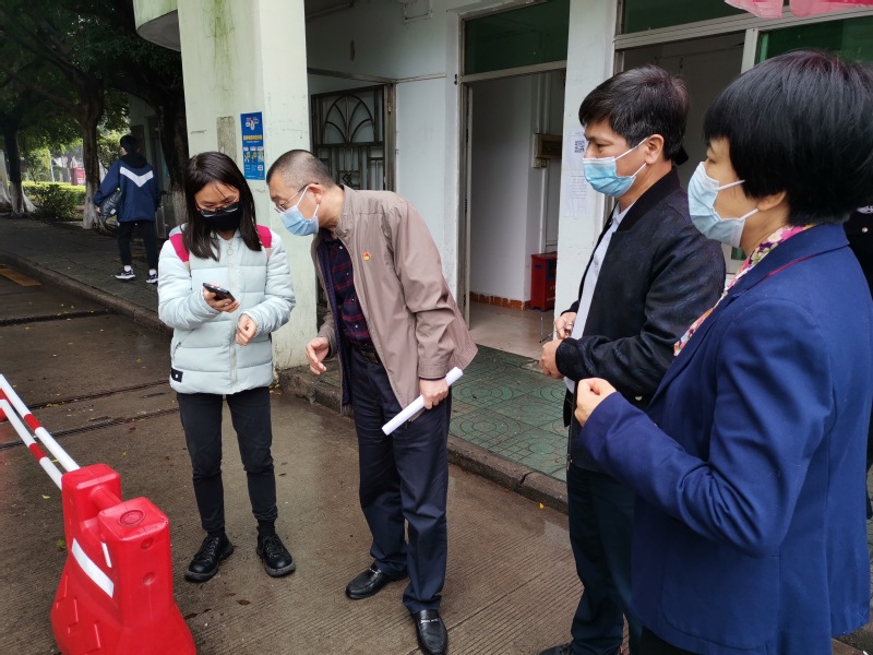 陈树武重点检查了佛山校区东、西两校门出入校园人员亮证、验“两码”、测体温、登记情况,图书馆、医务室等重点场所相关防疫措施落实情况。检查中详细了解了校区诺如病毒感染病例管理、环境消毒、溯源排查等情况。