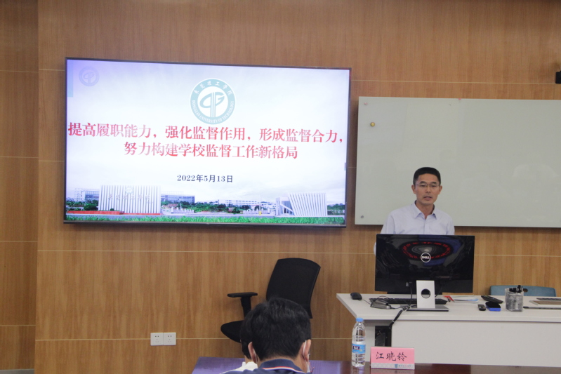 为提高学校纪检监察队伍的业务能力,充分发挥专兼职纪检监察队伍的作用,全面加强学校党风廉政建设,推动学校全面从严治党向纵深发展,5月13日,学校举办纪检监察业务工作辅导交流活动。东莞理工学院党委副书记、纪委书记、监察专员赖日辉,我校党委副书记、纪委书记、监察专员陈树武分别作专题业务辅导。东莞理工学院纪检监察同行,我校纪委委员,各二级党组织纪检委员,纪检监察室、巡察办全体干部参加辅导交流。交流活动由纪委副书记、纪检监察室主任江晓铃主持。